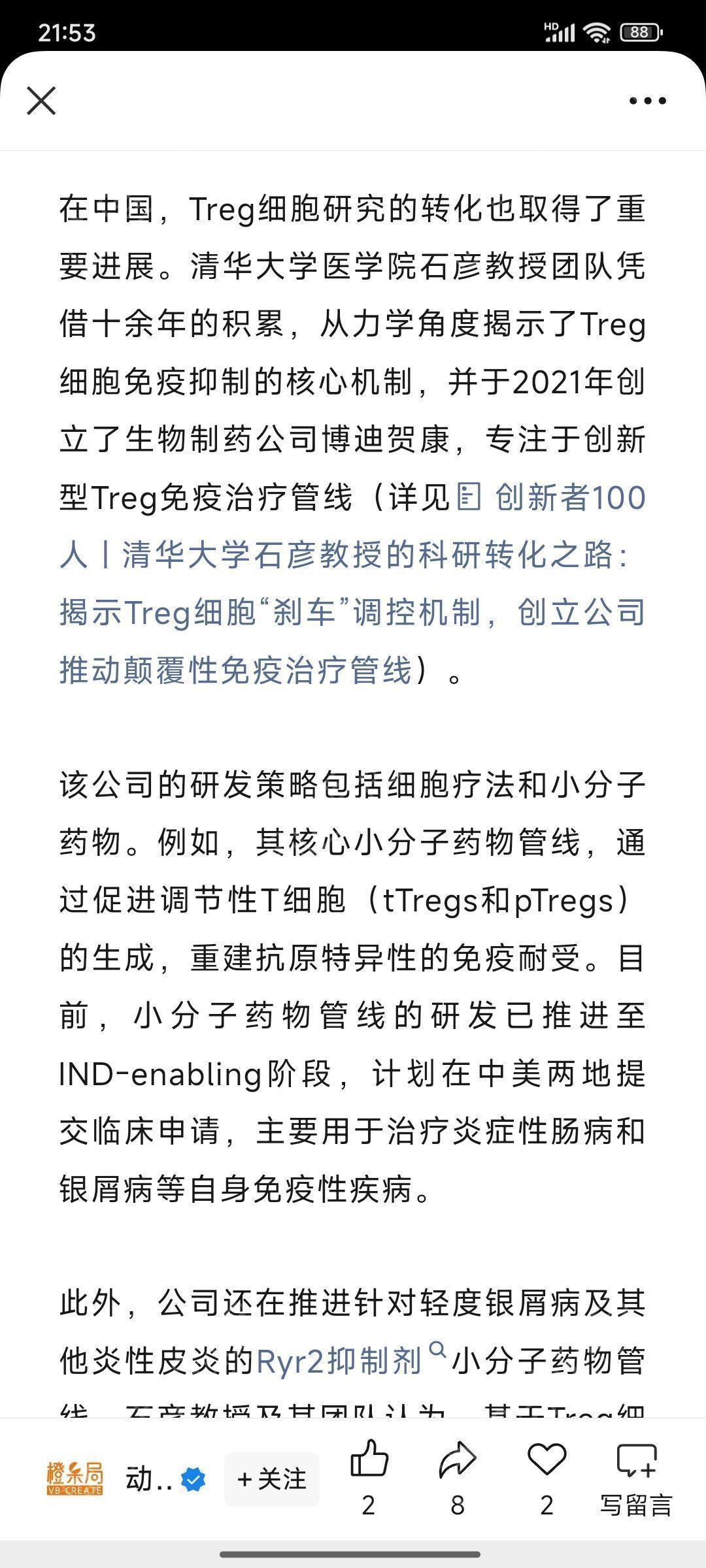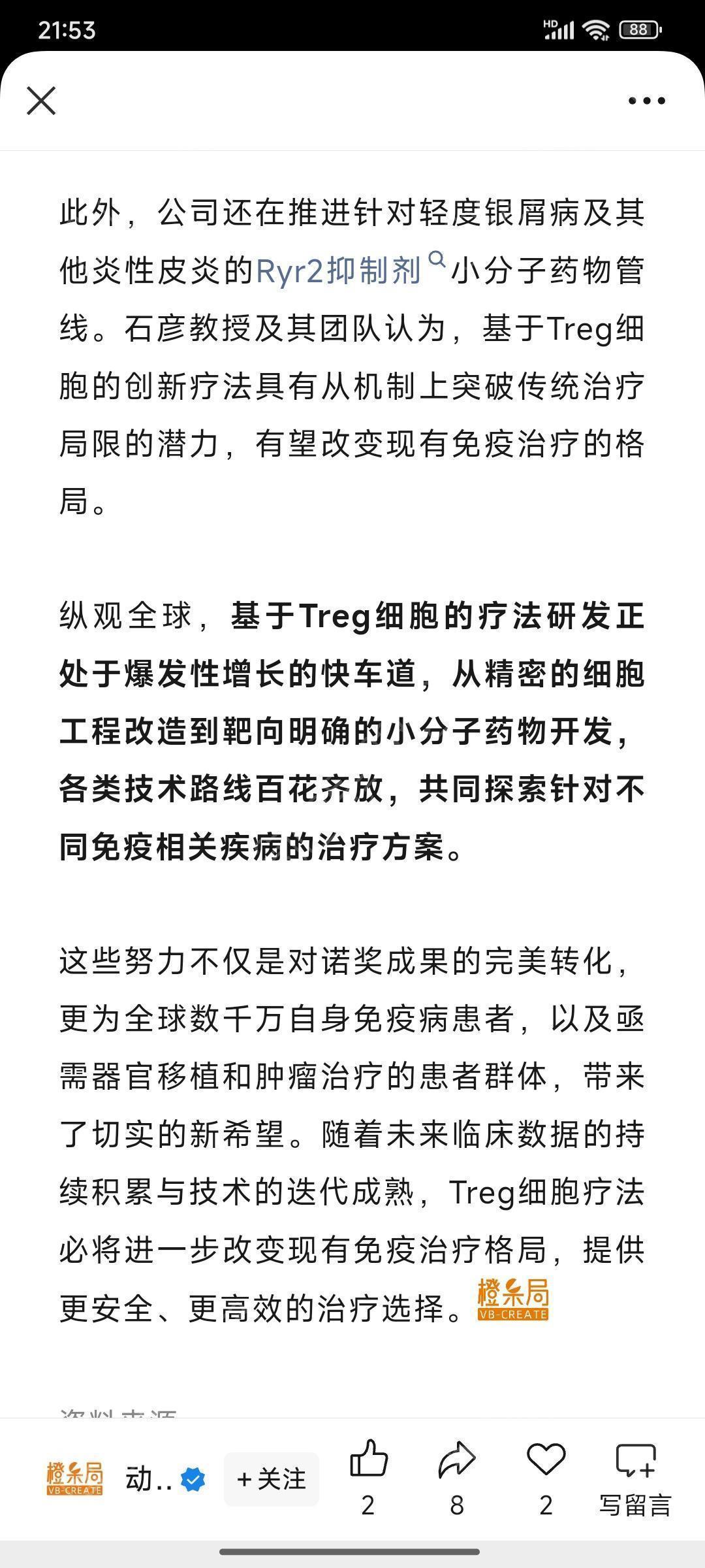 [资讯] Treg细胞疗法中国也在布局中! |