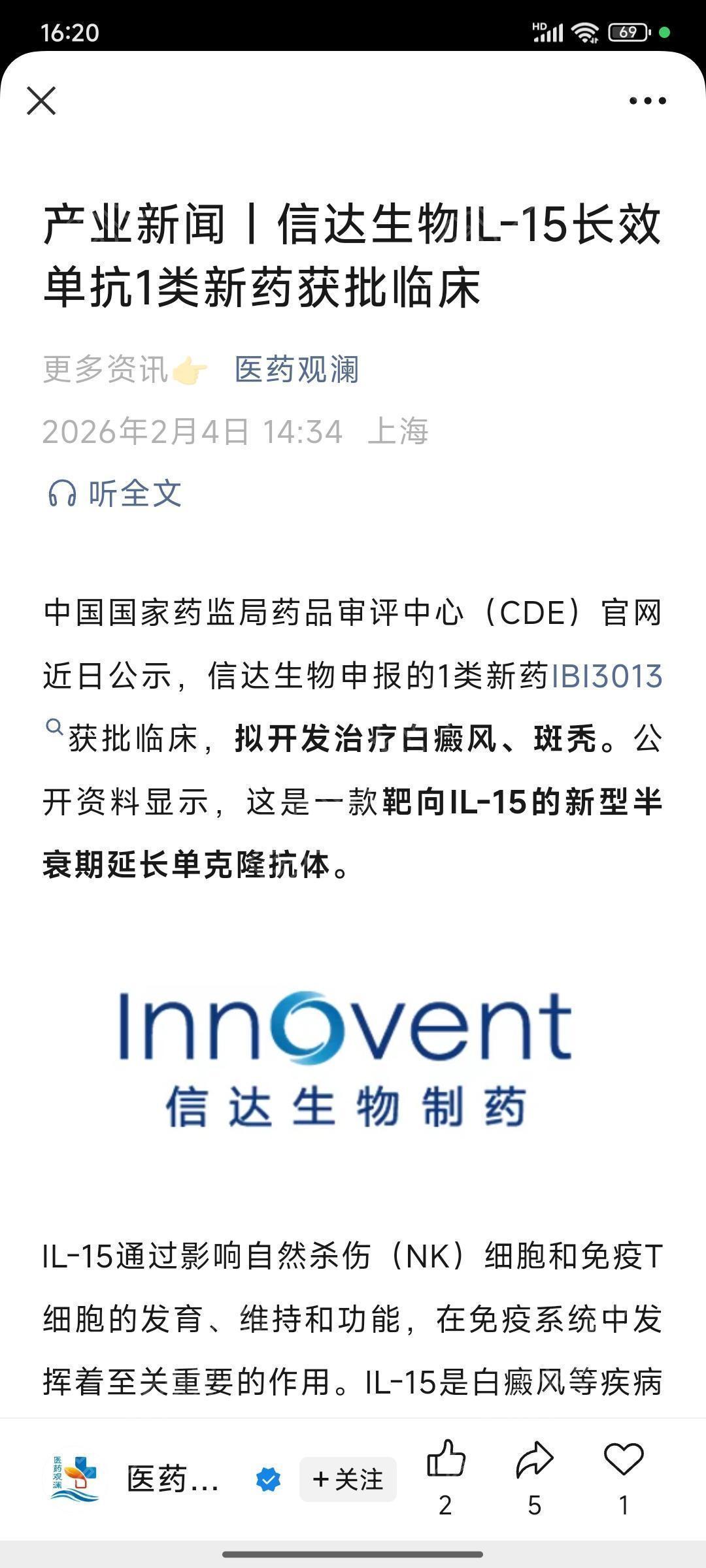 [资讯] 信达生物IL-15长效单抗1类新药获批临床更多资讯! |